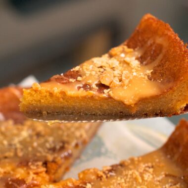 Dulce de leche-kladdkaka med salt kolasås och Werther´skross