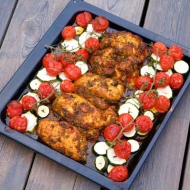 Marockansk kyckling i ugn med kvisttomat och zucchini
