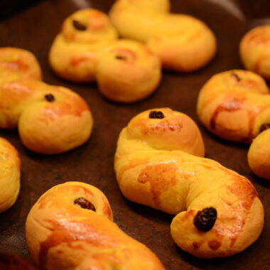 Om två veckor är det lucia och då måste det bara finnas lussekatter i huset så i kväll har min man bakat lussekatter, julstämningen pikade när saffransdoften spred sig i huset 🙂