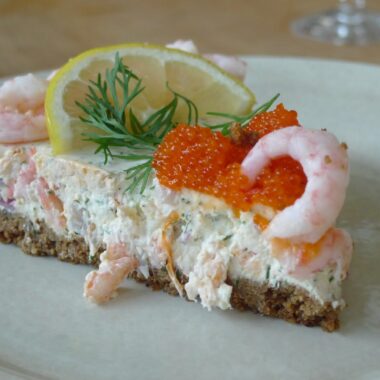 Olika skaldjurstårtor och cheesecakes är så otroligt smarrigt och speciellt när det vankas sommar och härliga sammankomster! Denna härliga cheesecake är ett säkert kort att ställa fram på midsommarafton 🙂