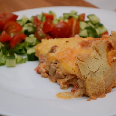 Kyckling tycker jag har en tändes att bli torr men det finns ett antal rätter där den inte alls blir det och denna rätt är en sådan. Jag har idag ätit den för första gången och den kommer upp på 3-i-topp-listan över pajer, riktigt god!