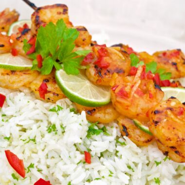 Grillade apelsin- och chiliräkor med limeris