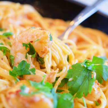 Riktigt härligt krämig pasta med räkor som går väldigt fort att tillaga, den passar perfekt att laga när man har lite tid och är trött efter en jobbig arbetsdag eller vecka!