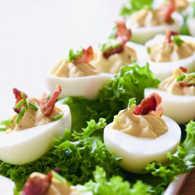 Härliga ägghalvor att ställa fram på påskbordet. Gillar man Caesarsallad då kommer man absolut att gilla dessa caesarägg 🙂