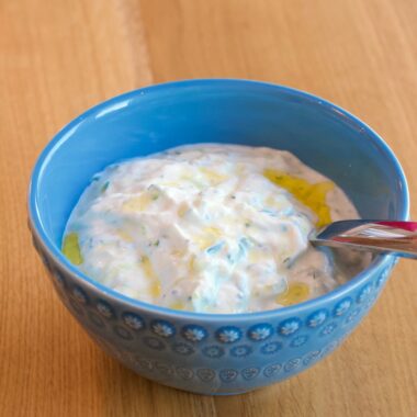 En riktigt klassisk tzatziki är ett fantastiskt gott tillbehör, framför allt till grekisk mat tycker jag. 🙂 Vi brukar även göra vitlöksbröd och servera det tillsammans innan middagen mellan varven.