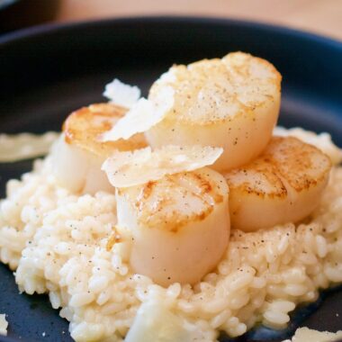 Parmesanrisotto med pannstekta pilgrimsmusslor