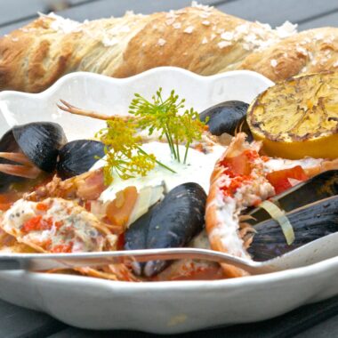Bjuder ni till kräftskiva till helgen och vill bjuda på något lite annorlunda istället för det traditionella, då är denna gryta ett ett tips 🙂 En härlig mustig bouillabaisse med kräftor och blåmusslor som går att förbereda fram tills att du skall lägga ner skaldjuren.