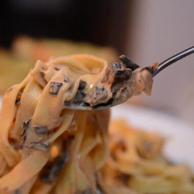 Häromdagen fick jag svart trumpetsvamp av snälla Ulrika som jag gjorde en kanongod svampsås av, igår tog jag resterna av såsen och tillsatte ädelost. En suveränt god pasta blev det! 🙂