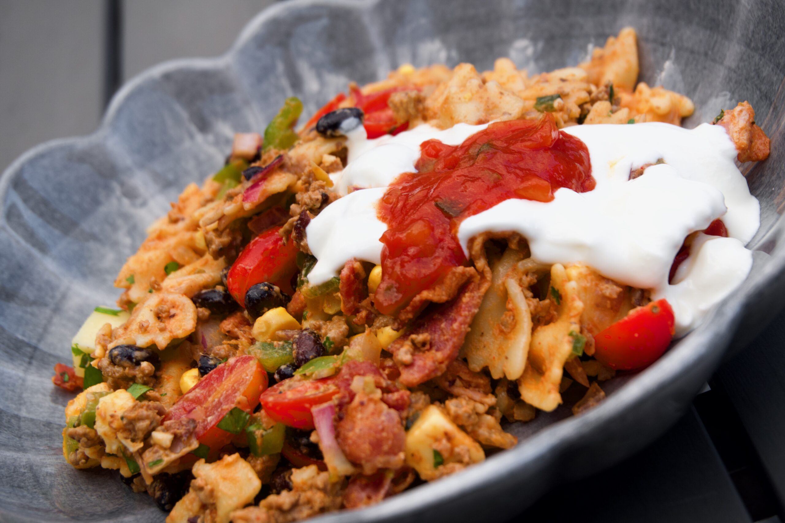- Häll mjöl, salt och bakpulver i en bunke och blanda väl.