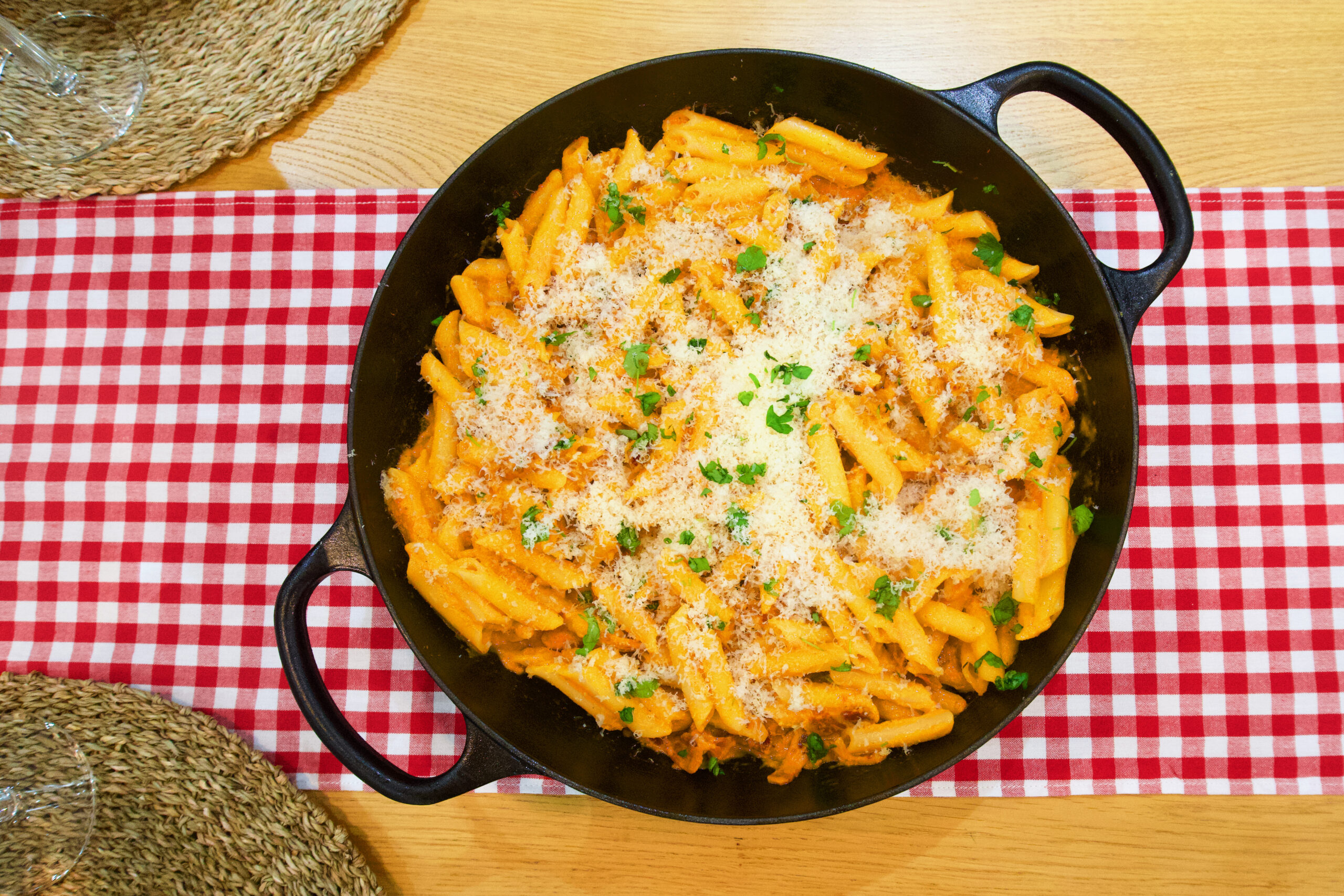 - Tillsätt den kokta pastan och smöret i såsen och blanda väl. Vill du ha pastan lite ”lösare” tillsätt då lite i taget av pastavatten tills du får önskad konsistens.