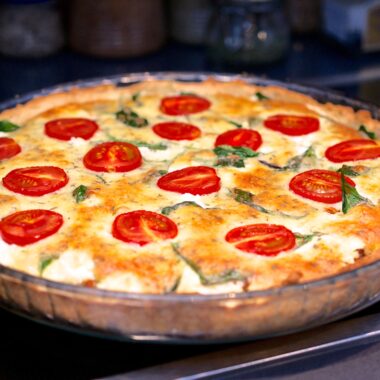 Jag gjorde den för första gången för ca fyra månader sedan och den passar lika bra till frukost som till middag och det bästa är att man inte alls blir lika tungt mätt som när man äter en vanlig pizza!!! 😀