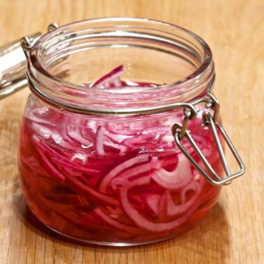 - Lägg lökskivorna i en tätslutande burk och slå på lagen.